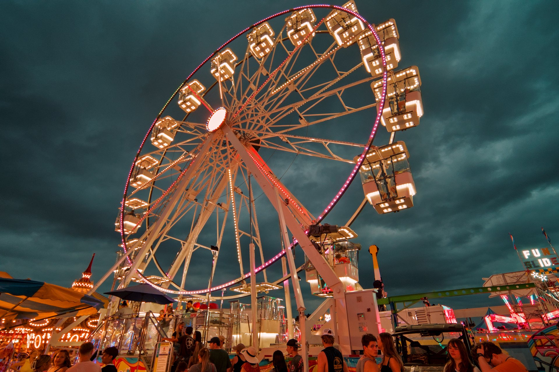 Night at the County Fair This evening I took my daughter and her friend to the County Fair and walked around with my Pixii A2572+ camera and the Laowa 11mm f/4.5 and Voigtlander 28mm f/1.5 lenses. The clouds were beautiful before sunset and then the festival lights turned on after. Post navigation Random Images and my Pixii A2572+ Back from RepairNational Night Out small town event