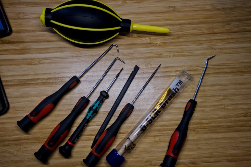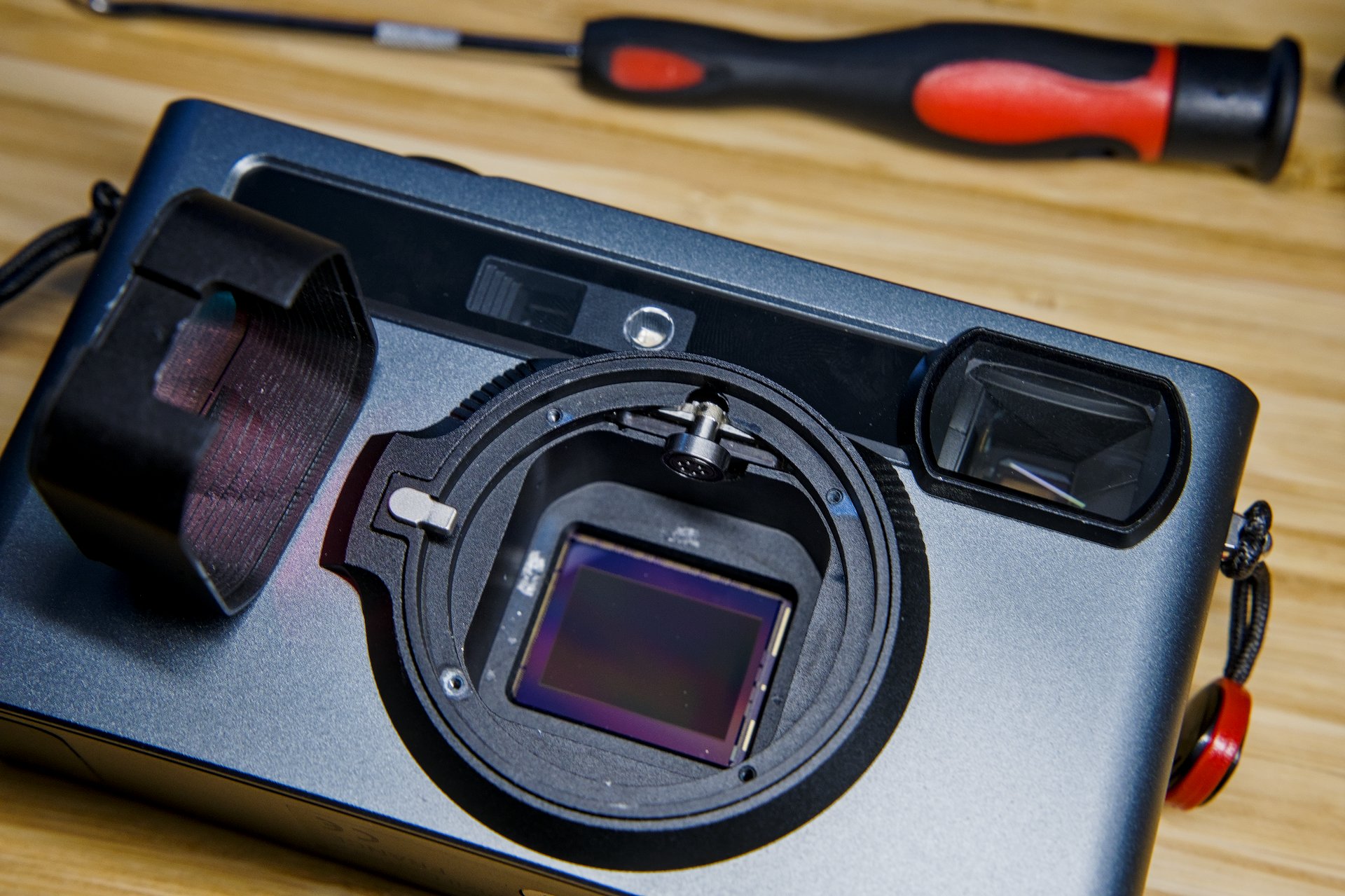 Pixii Rangefinder Sensor and IR Glass Cleaning Dust is inevitable. At some point with an interchangeable lens camera, dust will get inside your camera sensor box area and it will need blown out or cleaned. On most cameras, this isn’t an issue because once you remove the lens, you have access to the sensor cover glass which is bonded to the image sensor so you can just carefully use a blower bulb or even a wet clean kit to get any dust, oil or particles off. I’ve cleaned sensors on cameras from Olympus, Panasonic, Nikon, Fuji and even my Leica M10 when I had it. With the proper supplies and a steady hand, it’s not a hard job. Then comes my Pixii A2572+ digital rangefinder camera. I first noticed a few dust spots on some landscape images at a very small aperture. No problem I thought, just get a blower bulb and blow it away. Except in this case, the offending dust spots were sitting behind the IR cover glass but in front of the image sensor. Uh oh. Before continuing on, I just have to say that what I’m about to do will absolutely void your warranty and if you screw it up, can seriously damage your camera. Do not attempt unless you are confident in what you are doing and do not hold myself or Pixii accountable if you do try. This is absolutely 100% not sanctioned by Pixii. All of the dust spots in this image were behind the top level IR cover glass so I couldn’t get access to them. Numerous subtle dust spots all over the image Once I fiddled with the camera and realized I couldn’t do anything about this, I reached out to Pixii support via email. I prefaced my email saying that I didn’t want to send the camera back to France to have it cleaned and was hoping there was a way I could do it myself, fully understanding that if I do something stupid it and break something, it’s on me. Thankfully, they responded. The reply started with the typical “It is not recommended…” message. I expected this since pulling a complicated camera apart should not be done by untrained people. I am one of those untrained people who likes to tinker. What surprised me though was when I read on, it continued with “… but since you have particles which have migrated to the visible zone, it’s worth trying.” Then the email went on with an explanation about how the ‘dark chamber with IR glass’ is attached over top of the sensor mount with adhesive and there are a few ways to remove it and how to proper clean it. Now I had hope! So I gathered my tools and got my workstation ready. Next up was removing the 4 screws that held the bayonet lens mount on and the metal spacer shim beneath that. Once that was off, I had little more room to work. I noticed that on either side of the ‘dark chamber’ were small holes. My curved hook tool was the perfect size to carefully insert in and start to carefully wiggle the chamber side to side and vertically. I could both feel and hear the adhesive start to loosen. I repeated this on the other side of the dark chamber as well. In the end, it took about 8 minutes of carefully lifting and prying of the dark chamber. When I finally had the adhesive defeated, I took a 2nd 90-degree hook and now inserted one in each side of the chamber and lifted straight up. The dark chamber piece with attached IR cover glass easily lifted off and then I just had to push on the rangefinder cam arm a bit and the dark chamber and cover glass was out! Bayonet mount, dark chamber and IR cover glass removed. ‘dark chamber’ in my hand. Note the small hold near the IR glass on the right side of the chamber. This is one of the pry points. Now I had full access to the sensor. With the blower bulb and my sensor brush, everything was cleaned up in no time and re-installation was a snap. Pixii said for any debris welded to the sensor, IPA could be used to carefully clean it. I didn’t see anything after I blew/brushed it off, so I just put everything back. Within a few minutes the camera was back together and I was able to test it out with great success. Sky image after cleaning and reinstallation. I can see a single spot I missed, but for now that is good enough. While this was a bit nerve racking, I’m ecstatic that I was able to clean this myself without sending it half way across the world. Kudos to Pixii for even telling me how to attempt this repair. I have emailed them about 5 times since owning the camera though, so they probably are just tired of dealing with me! Either way, I got the information I needed and got everything cleaned out. In the future it would be nice if they had an easier way to get the dark chamber out by not using adhesive to hold it down. Hopefully that is an engineering change they could make. So to bring an end to a long story, if you have a Pixii rangefinder and end up with dust behind the IR cover glass, it is possible to clean yourself. Not the easiest job, but doable. I should also say that the model I own is the APS-C sensor sized Pixii A2572+. I don’t know if this would be the same method on either the original A1572 or the newer full frame A3410. Again, attempt this at your own risk. Post navigation No Prep Drag Racing at Magnolia Motorsports ParkBiking and Hiking Pictures